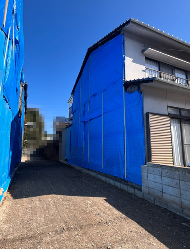 空家になって老朽化してしまった実家の解体のご依頼がありました。外壁が隣接する隣家2軒と接していたので解体後に隣家の外壁の補修のご相談も併せて行いました。