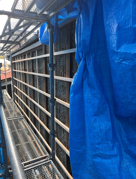 一旦、土壁を綺麗に補修して、家主様のご希望に沿った鋼板仕上げで外壁を新設致しました。
